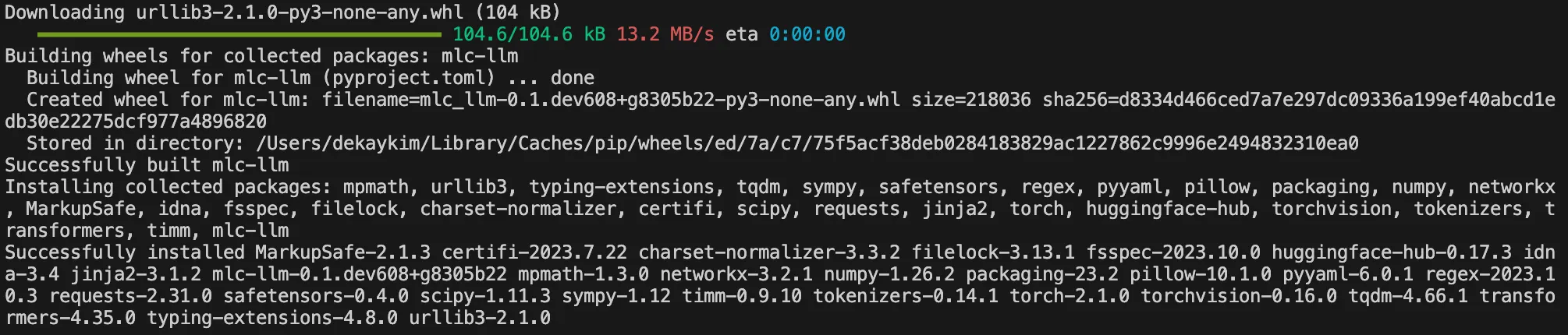 環境設定 → mlc-llmパッケージのインストール → WebGPU LLMのコンパイル
