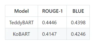 韓国では、「(韓国)国立国語院人工知能言語能力評価」示範運営課題のうち、「表ベースの文章生成」課題があり、ベースラインモデル及び学習と評価のためのデータセットはteddysumの korean_T2T_baselineで確認できる。 2022年基準モデルの性能は次の表の通りである。