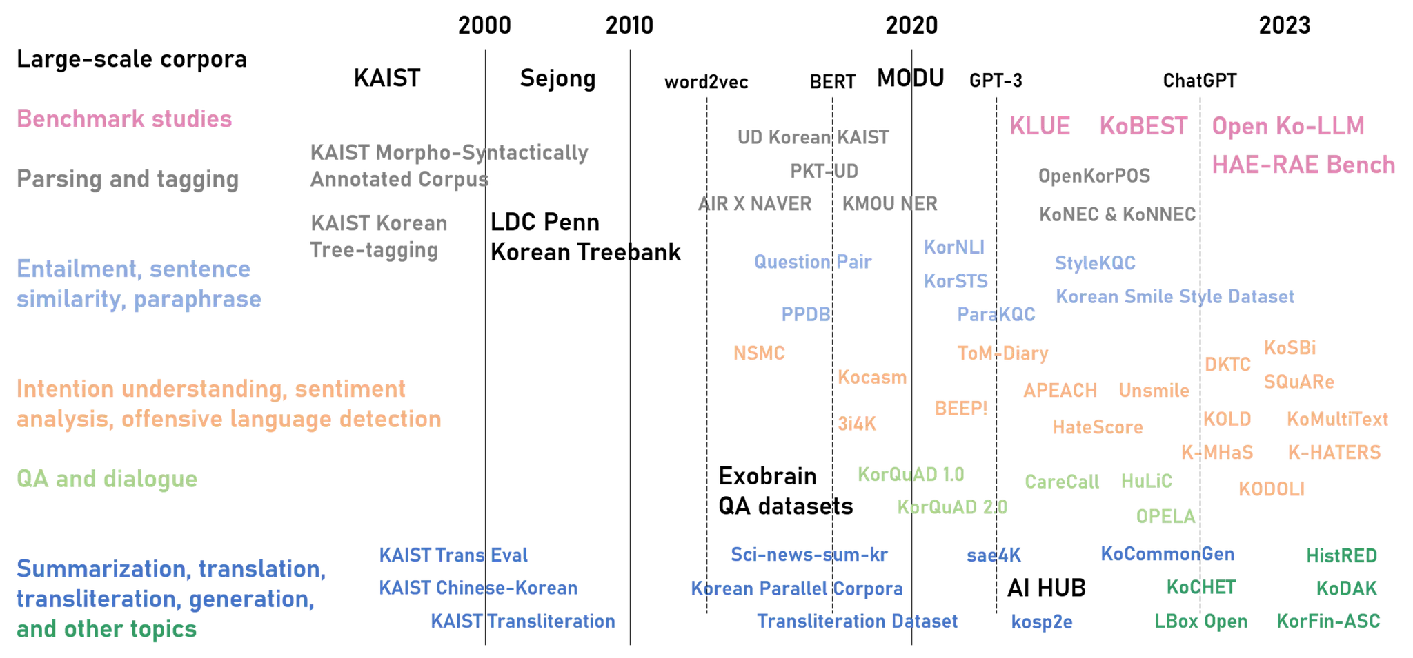<図4> Diachronic Overview of (Open) Korean Corpora (1990s – 2023)