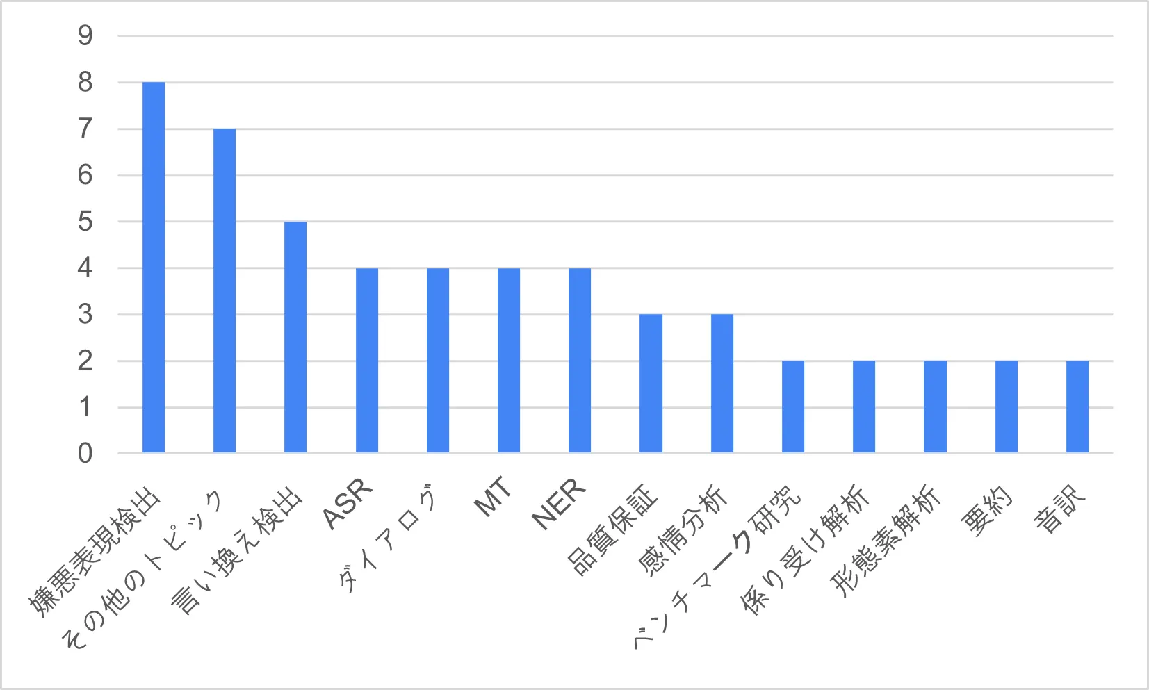 2020年から現在(2023年)まで、嫌悪表現とともに様々なテーマ(その他のテーマに含まれる)のデータが増加しました。全体的に意味分類に関連するデータが研究や産業で多く使われていることが確認できます。