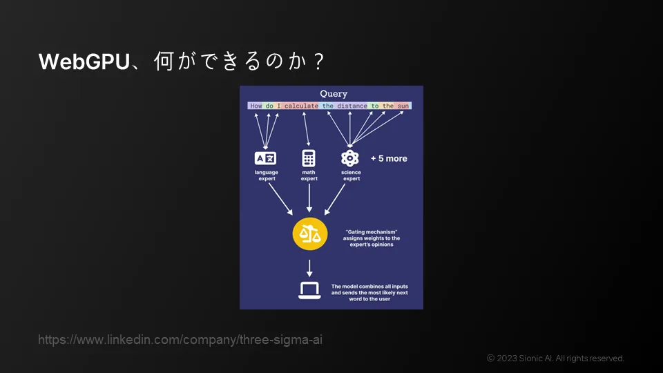 一般的な言語を構成するモデル、計算力を担当するモデル、科学的な知識と常識を担当するモデルなど、複数の専門家モデルを連合