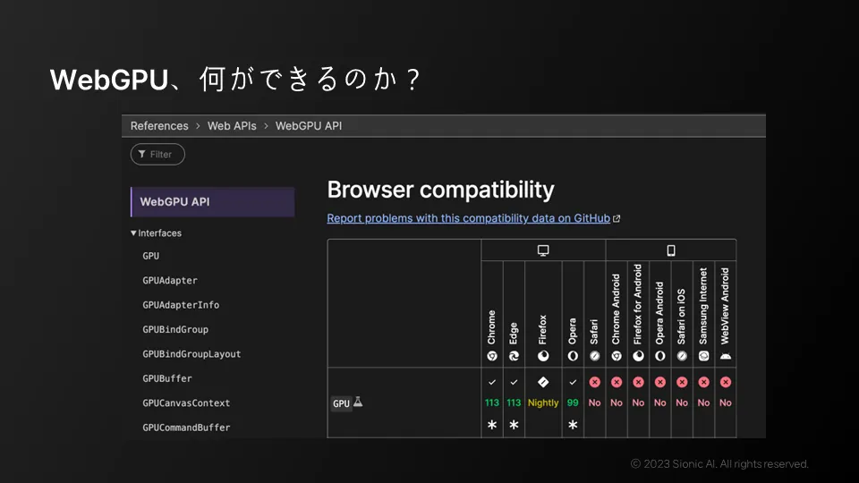 ネイティブGPU APIとWebGPU APIなどプラットフォーム別に動作