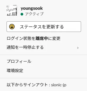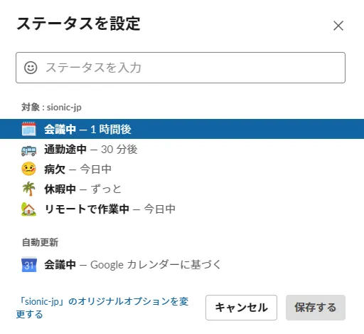 例2) 在宅中、集中モード(開発中なので返事は難しいです)、休暇中、本日業務終了! など、、
